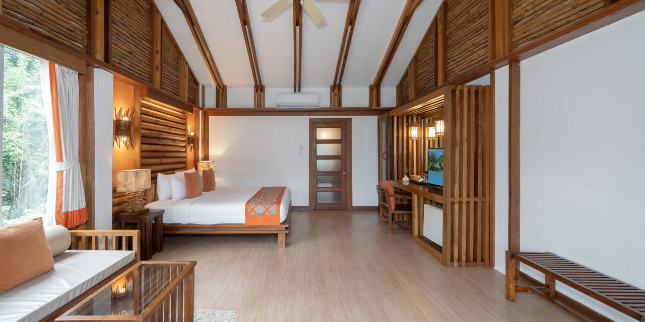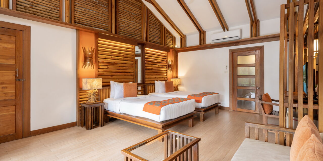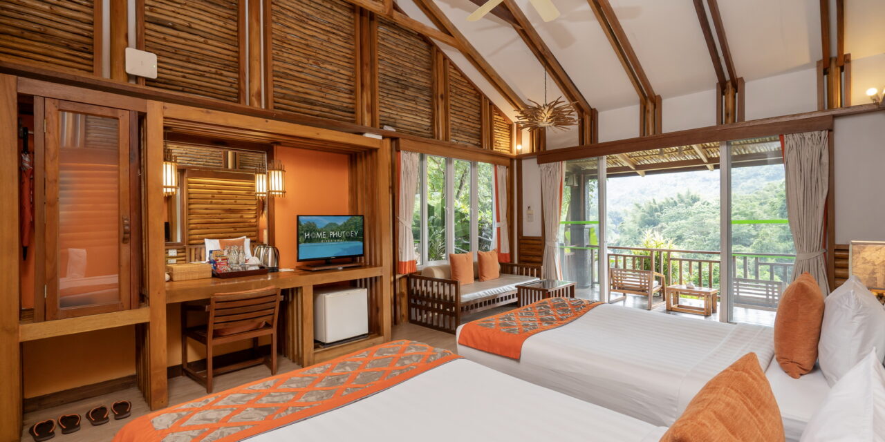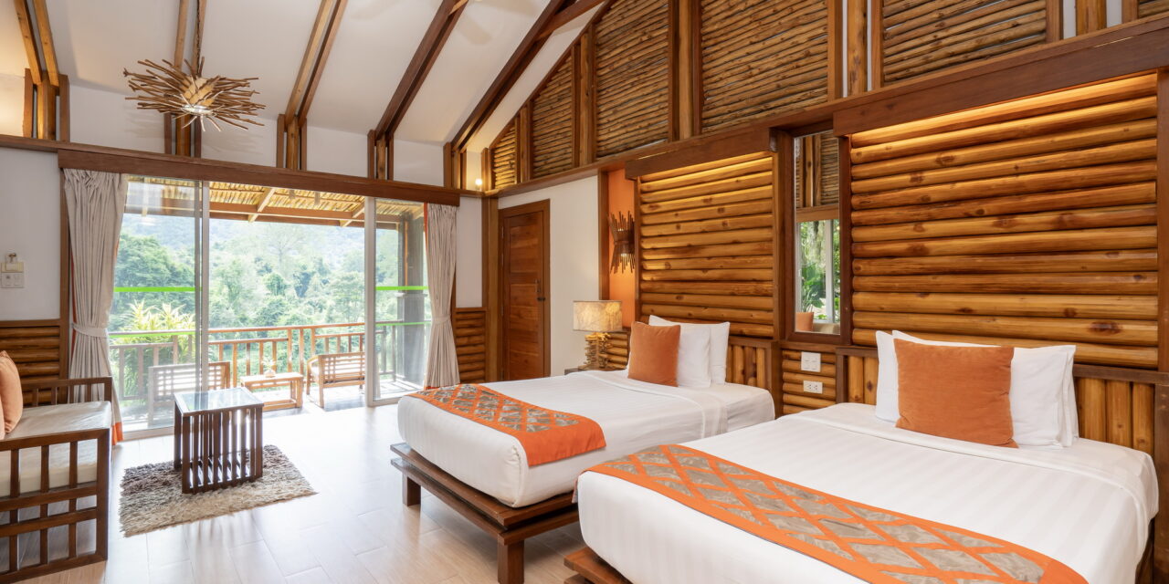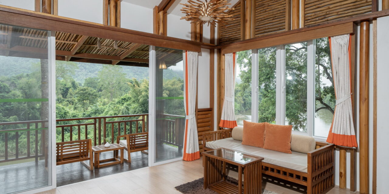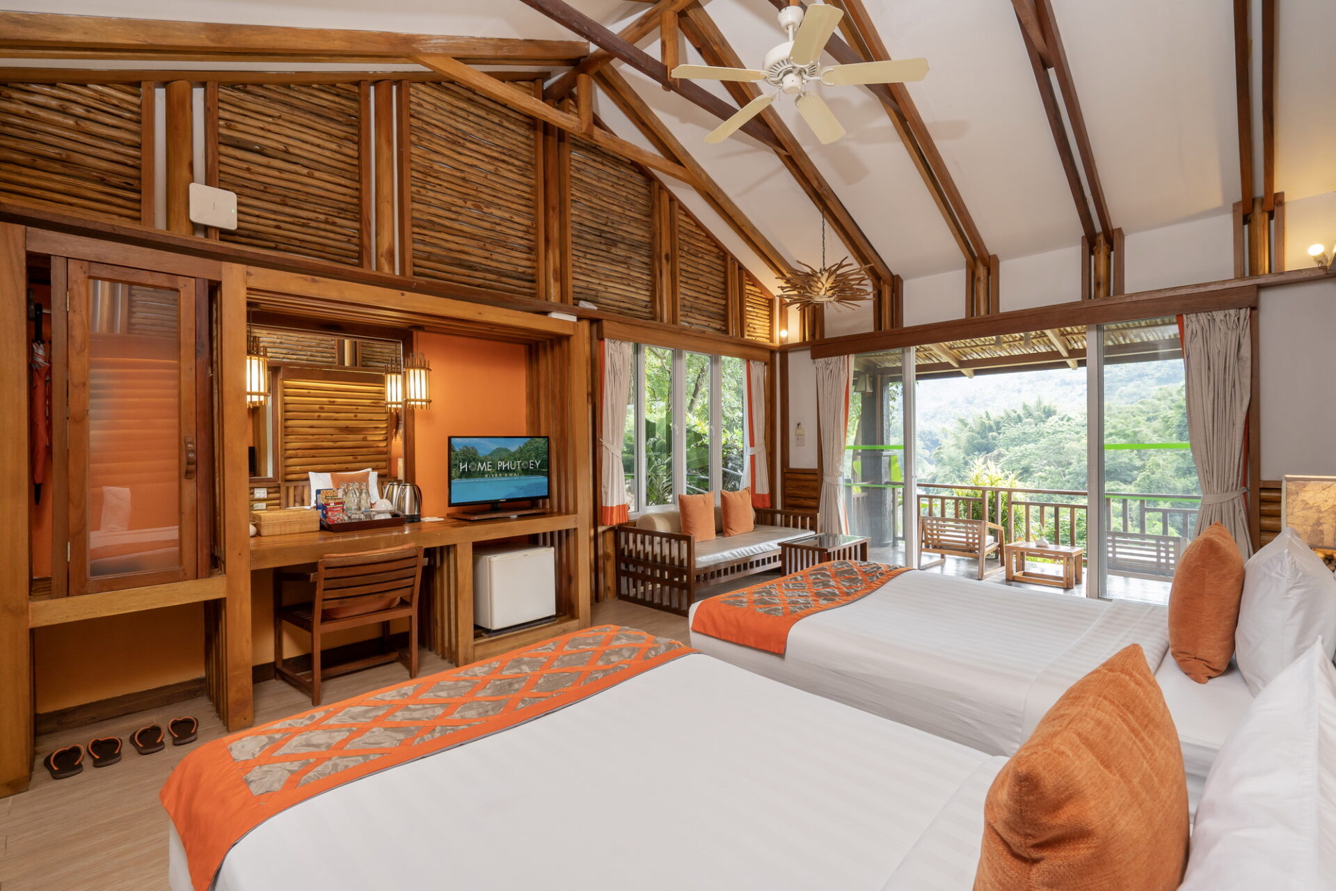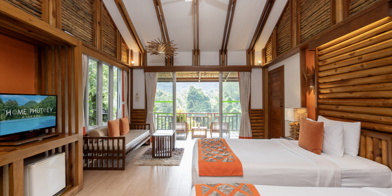 Two-Bedroom River View Deluxe Family feature a king-size bed and king-size bed + single beds. The two bathrooms are fitted with rain showers. They are therefore very suitable for families. The room have a very spacious area of 94 m², Enjoy view Kwai Noi river from balcony.