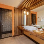 River View Onsen Villa (thermal hotspring) have panoramic views of River Kwai right on the most beautiful spot . All the exclusively tailored-made wooden furniture completes the luxury of Onsen room.
